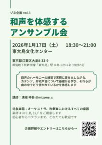 和声の初歩を学びたいというアマチュアの生徒さんの発案で開催することになりました。9/3頃に急遽企画をしはじめて参加者を募集したところ、瞬く間に定員20名に達し、「こういう企画も需要があるのだなあ」と驚きました。