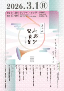 3月1日(日)15時開演、テアトルフォンテ(相鉄いずみの線いずみ中央駅直結)にて開催です。